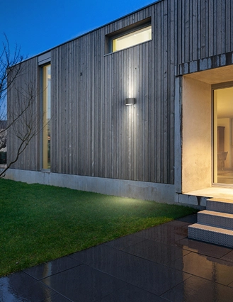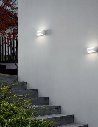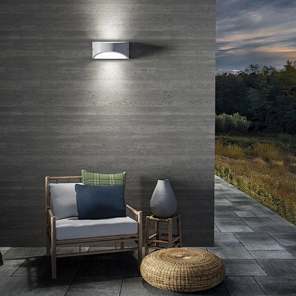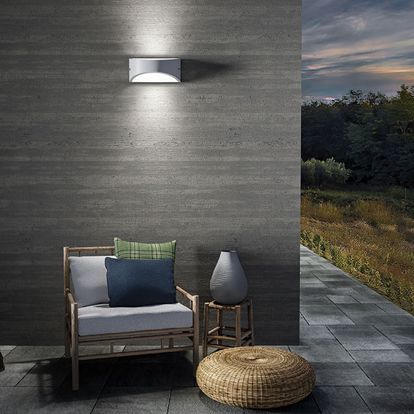 Applique semplice e funzionale per l’outdoor di case, hotel, locali o ristoranti. Lien ha una struttura in alluminio ed è disponibile con finitura in bianco, grigio antracite o marrone. Diffusore in metacrilato. Luce biemissiva.