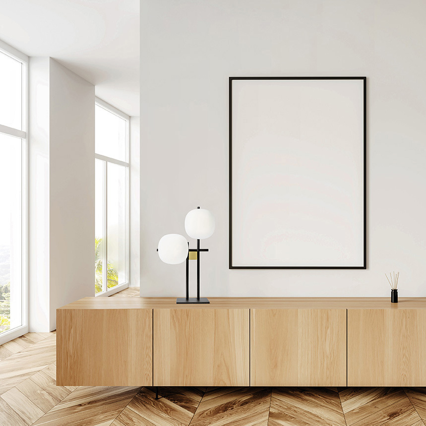 Lampada da tavolo in metallo nero, con particolari oro spazzolato e oro rosa. Vetri soffiati opalino forma arrotondata. Dotata di dimmer. Lingotto splende in questa versione a 2 luci e può essere collocata in diversi contesti per portare un tocco di stile.