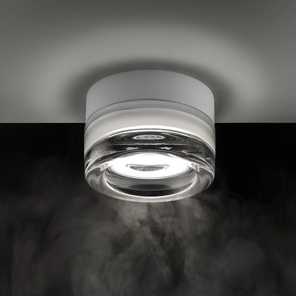 Lolly è un'applique dalla presenza discreta ed elegante in cui le estetiche del metallo e del vetro si congiungono nella forma compatta di due dischi sovrapposti. La base è in metallo verniciato a polveri o placcato e diffusore in vetro trasparente, sabbiato internamente. Colori disponibili: bianco con vetro trasparente, nero con vetro fume', ottone con vetro ambra. Lampadine LED GX53 9W 3000 K incluse.