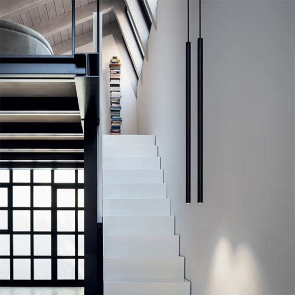 In questa nuova versione Look si presenta con un diametro di 1,6 cm e diverse lunghezze. Finiture disponibili: bianco, nero e ottone. Rosone e corpo luce in metallo verniciato a polveri o placcato. Cavo in pvc. Sorgente luminosa LED 3000 K, 50.000 h di durata.