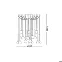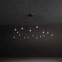 Una cascata di "lucciole" per questa lampada a sospensione scenografica con rosone e corpo luce sospeso in metallo verniciato a polveri o placcato. Diffusore sferico in acrilico satinato. Cavi in pvc con supporti a soffitto in alluminio. Colore: ottone o nero. Sorgente luminosa LED 3000 K, 20.000 h di durata.