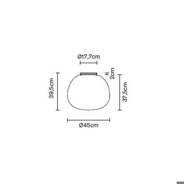 Il diffusore è in vetro soffiato bianco satinato, la struttura in metallo.