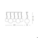Lampada a sospensione moderna disponibile a 1 luce o a 5 luci. La montatura è in metallo cromato sfumato e il diffusore a sfera è in vetro trasparente cromato con sfumatura verso il basso. I cavi sono in acciaio e sono a lunghezza regolabile. Questa soluzione illumina con stile la zona living della casa e si presta anche alla collocazione in ampi spazi di strutture ricettive.