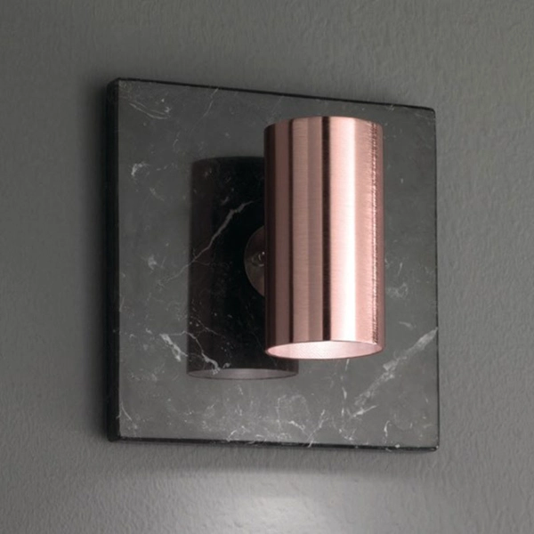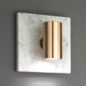 Marble è una serie di lampade da parete con struttura in marmo di Carrara e in marmo nero marquinia alla quale è applicato il corpo luce mobile disponibile in diverse finiture.