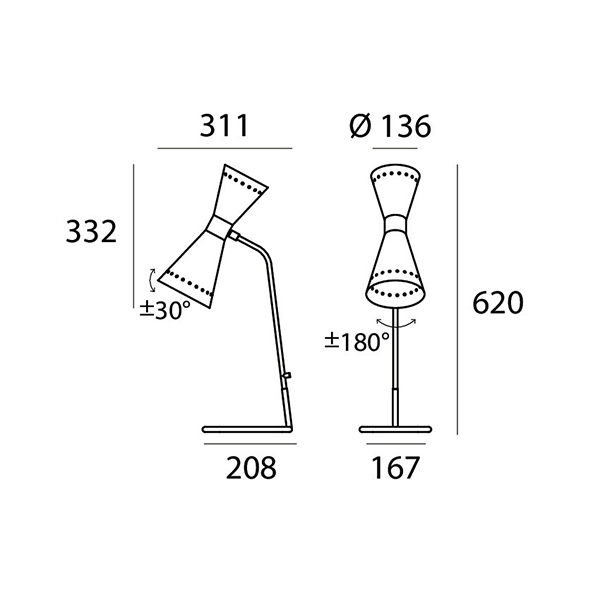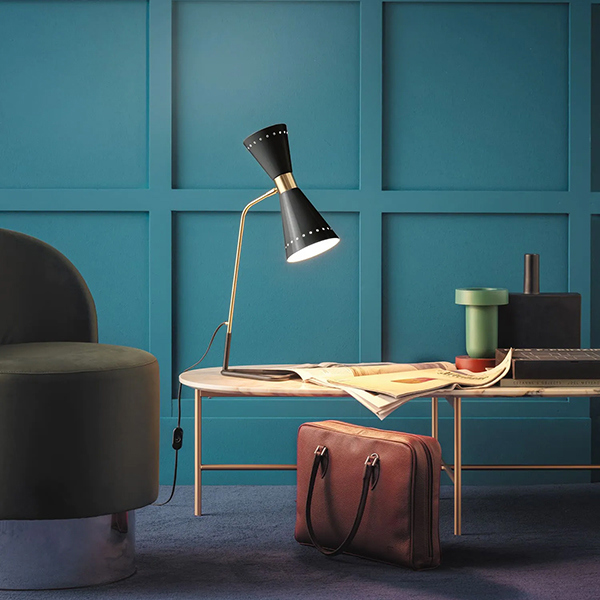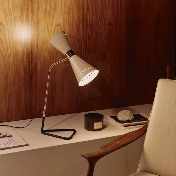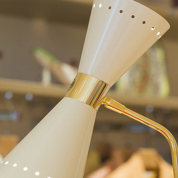 Megafono di Stilnovo è una lampada da tavolo che unisce fascino anni ’50 e funzionalità contemporanea. Il suo iconico doppio cono orientabile permette di scegliere tra luce diretta o indiretto, mentre lo stelo in ottone e le finiture lucide rendono ogni ambiente più elegante. Completa di sorgente LED calda 2700K, è perfetta per scrivania, comodino o angoli lettura.