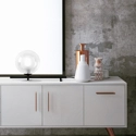 Lampada da tavolo di design con montatura in metallo verniciato nero soft touch. Questo articolo ha un diffusore in vetro borosilicato trasparente esterno e satinato interno con diametro 12 cm ed è dotata di dimmer. Si può posizionare in diverse stanze della casa o all'interno di hotel e locali. Design esclusivo di Davide Negri.