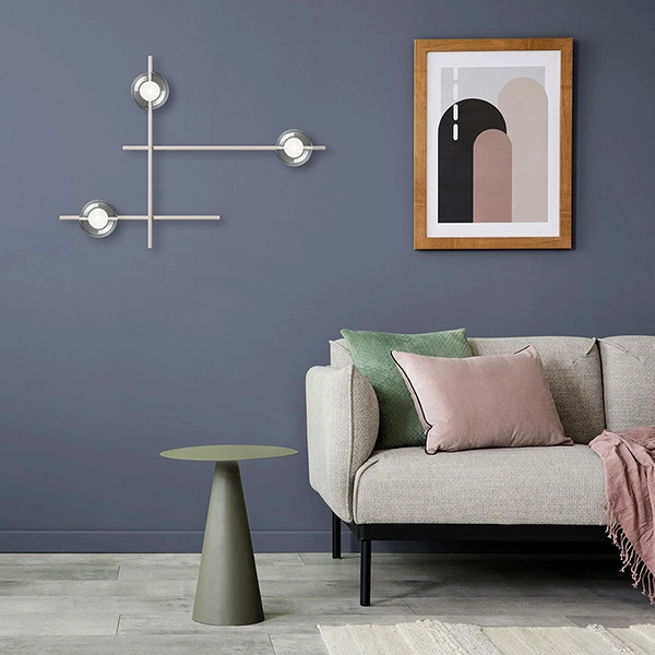 Soluzioni di design a 3 luci che può essere utilizzata come lampada da parete o da soffitto in diversi modi a seconda delle proprie esigenze. Grazie alla rotazione del braccio si possono scegliere varie combinazioni per ottenere un risultato unico. La montatura è in metallo verniciato a polvere nero soft touch o cipria opaco, mentre il diffusore è in vetro borosilicato trasparente esterno e satinato interno con diametro 12 cm. Design di Davide Negri.