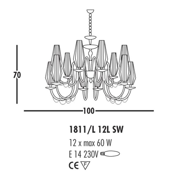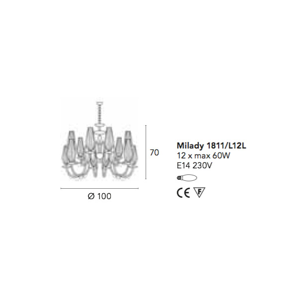 Altezza: 70 cm + catena e rosone tot. 140cm