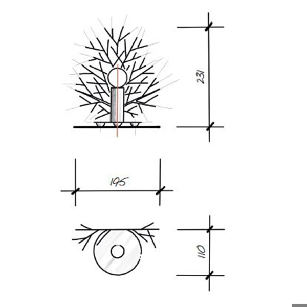 Il corpo luce è in ferro verniciato bianco con particolari in metallo. Di tendenza nel suo caratteristico colore bianco, si trova anche nelle finiture cromo, oro e rame.