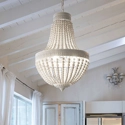 Montatura in metallo con fasce circolari decorate a sbalzo per Monet, un lampadario dallo stile classico firmato Ideal Lux. Illumina e porta un tocco di eleganza in ogni ambiente. Disponibile a 5 o 6 luci. Catene con perle in legno naturale. Finitura con vernice opaca bianca.