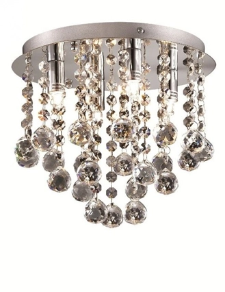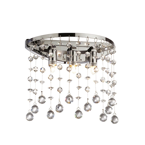 Applique dalla montatura circolare e portalampade in metallo cromato. Pendagli con ottagoni e sfere in cristallo molato.