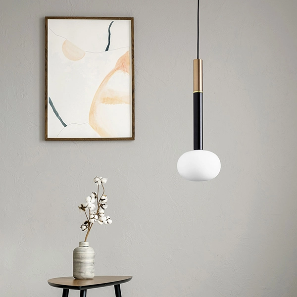 Nella variante a sospensione, Mose è un articolo versatile che risponde a diverse esigenze e che illumina in modo funzionale gli ambienti della casa, di locali o strutture ricettive. Grazie alla sua forma, Mose è ideale sopra ad un tavolo o ad un bancone per creare un’illuminazione precisa. Realizzata in vetro soffiato bianco latte, questa lampada ha una montatura in metallo verniciato nero soft touch, con particolari in oro, rame o bronzo spazzolato. Disponibile in tre versioni.