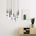 Non finisce di stupirci Mose e qui si presenta in versione lampada a sospensione a 9 luci. Un vero gioiello di design perfetto per ampi spazi sia di abitazioni private che di strutture ricettive e locali. Realizzata in vetro soffiato bianco latte con montatura in metallo verniciato nero soft-touch e particolari in oro, rame o bronzo spazzolato. Possibilità di configurare la sospensione con lampade di diversi colori e altezze. Contattaci per maggiori info!