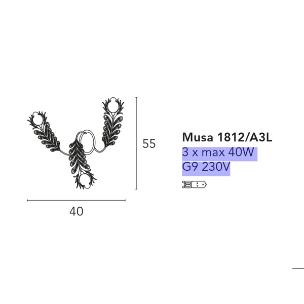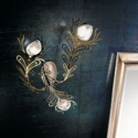 Applique 3l, realizzata da Bellart, struttura in metallo ed elementi tagliati a laser in bagno oro/ bagno cromo. Vetrisoffiati craquellee