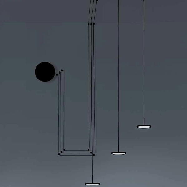 La puoi mettere dove vuoi Mystery! Questa sospensione a tre luci con base dislocata permette di portare la luce solo dove serve. Sopra il bancone di una cucina, sopra il tavolo in soggiorno o all'interno di sale di ristoranti, non ci sono limiti alla fantasia. Disponibile nei colori bianco e nero. Materiali: acciaio + alluminio + acrilico. Driver incluso. Grado di protezione IP20. Le varianti sono comprese di 5 kit di nottolini per il decentramento dei cavi della lampada.