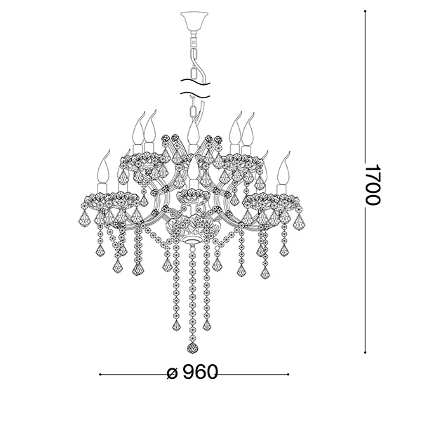 Che maestosità Napoleon! Un lampadario prezioso con montatura in metallo cromato o dorato, elementi decorativi in vetro soffiato e cristallo molato e copricatena in velluto. Si adatta a diversi ambienti illuminando con grande stile. In camera da letto o in soggiorno, questa soluzione non conosce limiti. Disponibile a 8, 12 e 18 luci.