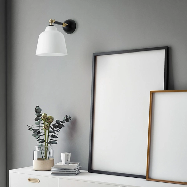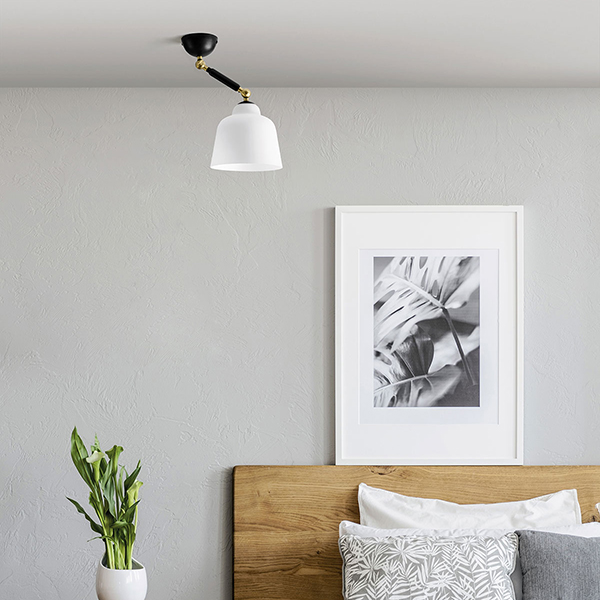 Neo Retro è una delle ultime novità firmate Miloox! Applique o plafoniera, questa lampada sorprende per linee semplici e di design. Una soluzione che si addice ad arredamenti moderni di abitazioni private o di hotel e locali. La montatura è in metallo verniciato a polvere nero soft touch; il diffusore è in vetro soffiato bianco latte di diametro 17.5 cm. Gli snodi in ottone permettono di alzare o abbassare la lampada secondo le proprie esigenze. Nessun limite alla fantasia con Neo Retro!