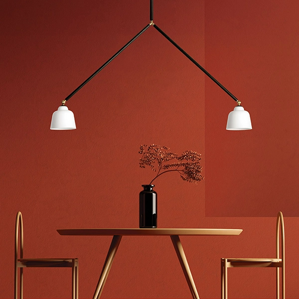 Plafoniera o sospensione? La scelta a voi! Le aste di questa lampada consentono di scegliere l'utilizzo preferito. Neo Retro piace per la linea semplice e di grande effetto. Nella zona living della casa o all'interno di strutture ricettive, locali e ristoranti, questa lampada si fa immediatamente notare. Dispone di una montatura in metallo verniciato a polvere nero soft touch e di un diffusore in vetro soffiato bianco latte di diametro 17.5 cm. È possibile, inoltre, ruotare il punto luce grazie agli snodi in ottone.