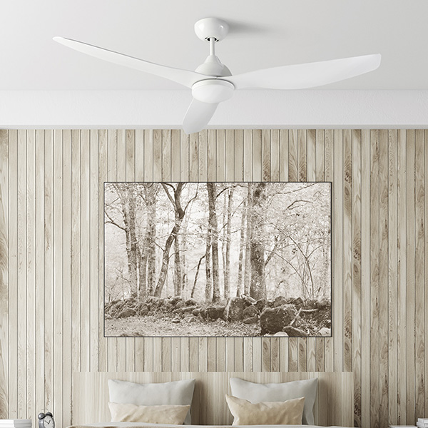 Un ventilatore da soffitto con luce minimal e dal colore bianco brillante perfetto per un arredamento dallo stile nordico. Adatto a rinfrescare l'ambiente illuminando verso il basso. Si caratterizza per essere extra silenzioso, avere bassi consumilunga durata e ideale per un uso intensivo. I materiali della struttura sono: acciaio, ABS e vetro. La rifinitura della struttura è: bianco brillante. Le pale sono realizzate in ABS con rifinitura in bianco brillante. Il materiale del diffusore è: vetro con rifinitura in opal opaco.