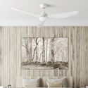 Un ventilatore da soffitto con luce minimal e dal colore bianco brillante perfetto per un arredamento dallo stile nordico. Adatto a rinfrescare l'ambiente illuminando verso il basso. Si caratterizza per essere extra silenzioso, avere bassi consumi, lunga durata e ideale per un uso intensivo. I materiali della struttura sono: acciaio, ABS e vetro. La rifinitura della struttura è: bianco brillante. Le pale sono realizzate in ABS con rifinitura in bianco brillante. Il materiale del diffusore è: vetro con rifinitura in opal opaco.