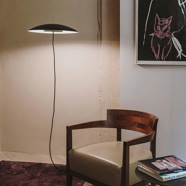 Sembra quasi in assenza di gravità questa piantana di design. Noway offre un elevato comfort visivo ed è disponibile in due varianti e in due finiture: nero metallizzato e oro opaco. Una soluzione ideale per creare giochi di luce originali e di grande effetto. Ideale per arredamenti moderni di abitazioni, hotel e ambienti commerciali. Sorgente luminosa a LED. Struttura in acciaio.