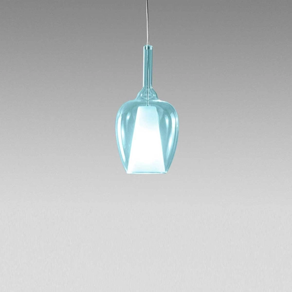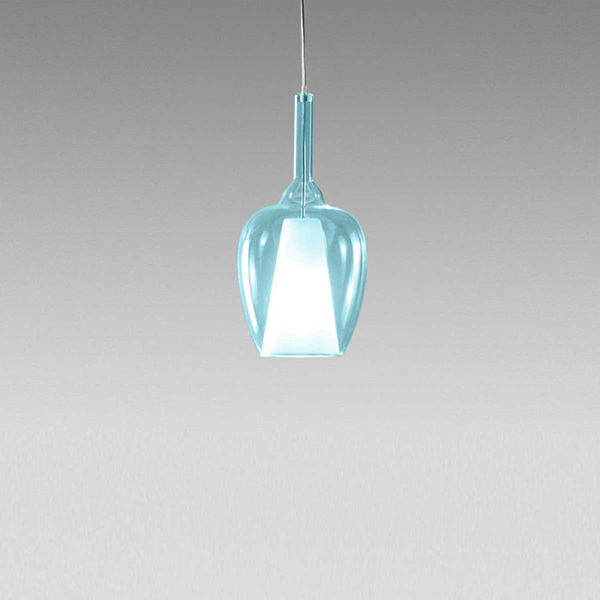 Ofelia S10 mini si caratterizza per una forma originale con un vetro interno satinato che diffonde omogeneamente la luce, protetto e rivestito da un secondo vetro trasparente, colorato trasparente o con finitura specchio. Il vetro è borosilicato con portalampade G9 bianco e cavo in PVC trasparente lunghezza 3 metri.
