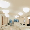 Corpo diffondente in polietilene lineare bianco traslucido, base d'appoggio in polietilene lineare bianco e metallo verniciato bianco opaco