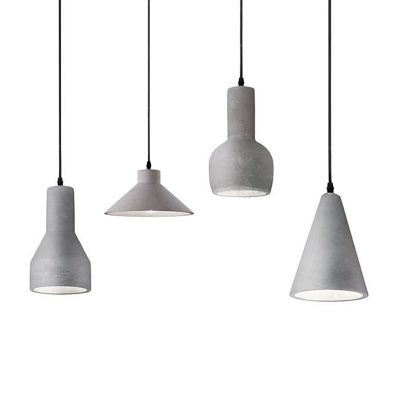 L'alta componente di design di queste lampade, oltre che dai diffusori in cemento, è data anche dalla montatura in metallo con finitura nero opaco.