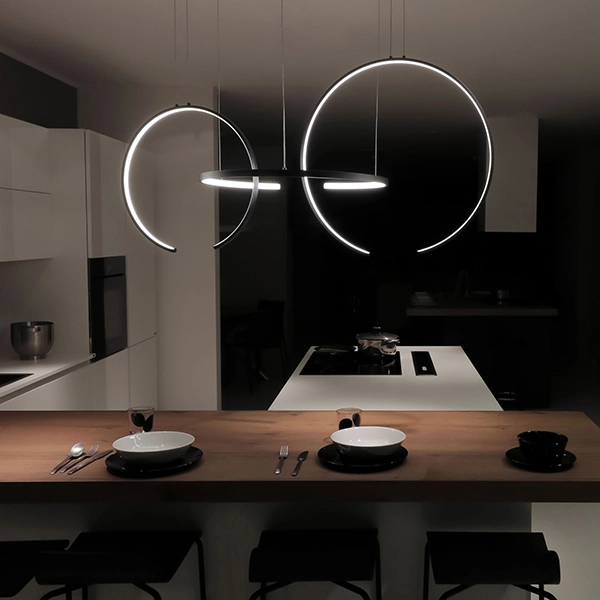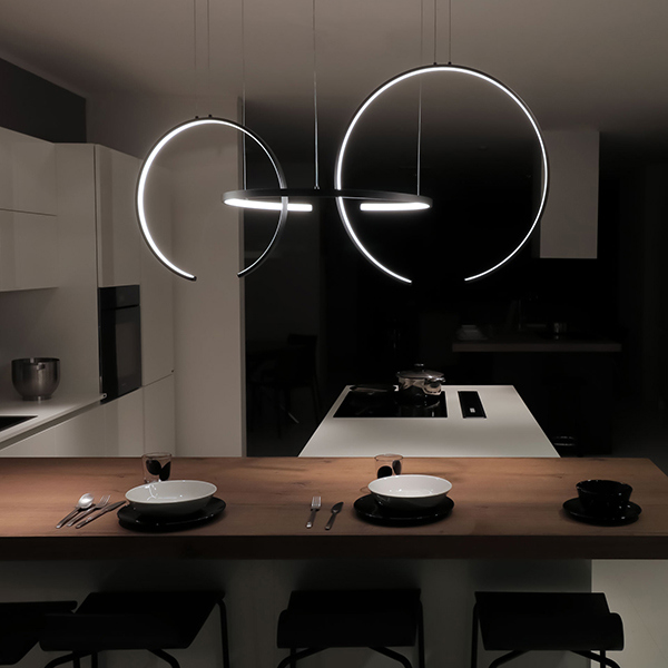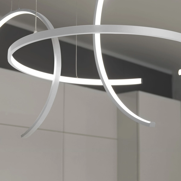 Lampada a sospensione moderna a 3 anelli che illumina e arreda allo stesso tempo. Perfetta per grandi spazi di case, hotel, locali, ristoranti e negozi. Una bella soluzione di Vivida International che piace per linee semplici ed essenziali e una sorgente luminosa a LED che crea una luce accogliente in tutto l’ambiente. Materiali: acciaio, alluminio e acrilico. Driver incluso.