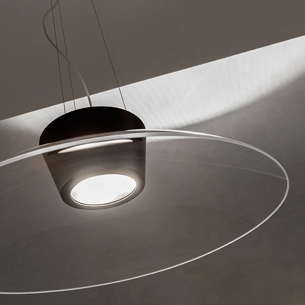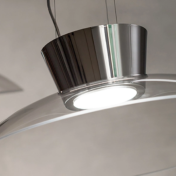 La sospensione Optik è puro minimalismo e design. Composta da un tronco di cono in metallo, un diffusore in PMMA e 3 cavi in acciaio per la regolazione, questa lampada veicola un fascio di luce dalle sorgenti luminose all’interno del cappello superiore in metallo grazie ad una lente trasparente. Disponibile in tre finiture: oro, nero e cromo. Il rosone a soffitto è bianco. Possibilità di inclinazione + 0 – 15°.