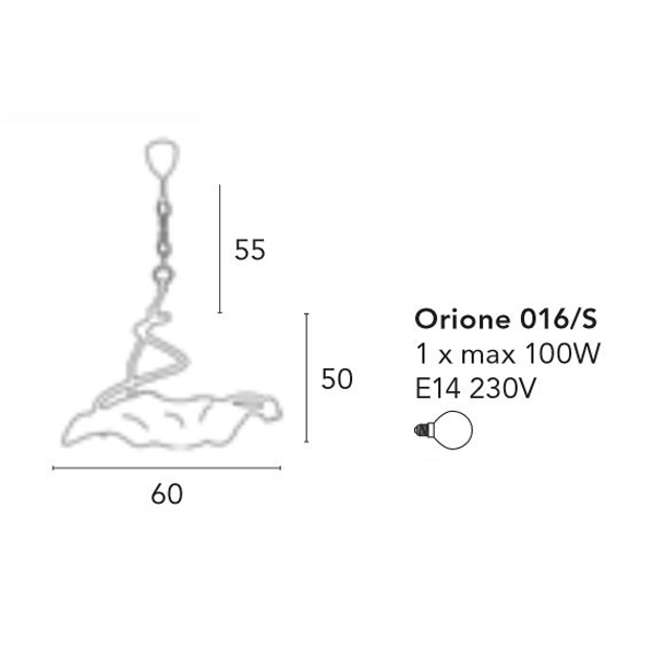 La struttura è in metallo forgiato e il diffusore è in vetro lavorato a mano, Orione è un vero e proprio capolavoro.