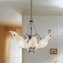 Sospensione 3luci realizzata da Bellart, struttura in metallo forgiato e diffusori in vetro lavorati a mano