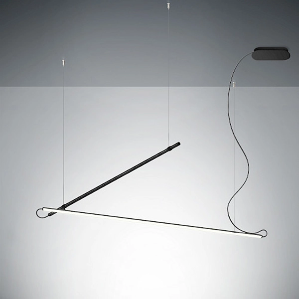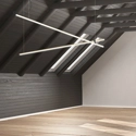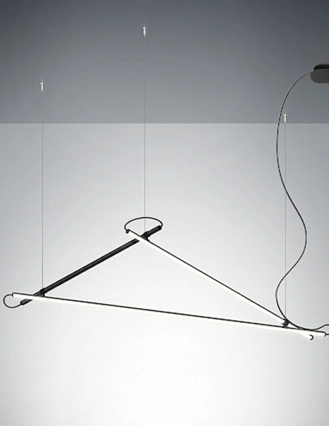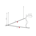 Composizione di due lampade a sospensione con misura 153cm + 153cm e alimentatore incluso nel rosone. Emissione luminosa down. Overlap in questa versione è una soluzione ideale per forniture contract ed è in grado di illuminare ampi spazi portando un tocco di eleganza. Struttura in alluminio estruso, diffusore in PMMA opal. Made in Italy.