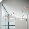 Composizione di tre lampade a sospensione con misura 153cm + 120cm + 95cm e alimentatore incluso nel rosone. Emissione luminosa down. Ideale per forniture contract di hotel, ristoranti, locali, scuole, ecc… Disponibile nelle finiture rame e nero. Struttura in alluminio estruso, diffusore in PMMA opal. Made in Italy.