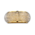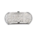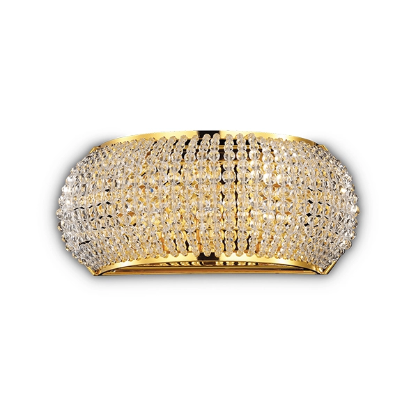 Applique in cristallo perfetta per illuminare le pareti di case e hotel arredati con stile classico. La montatura è in metallo, mentre il diffusore è composto da filari di perle in cristallo molato e fondo chiuso da vetro circolare sabbiato. Disponibile nelle due finiture preziose: oro e cromo. Lampadina inclusa.
