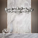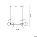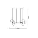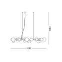 Lampada a sospensione di grande tendenza! Perlage ha una montatura in metallo con struttura lineare a sezione tonda o circolare a sezione quadrata. Diffusori in vetro soffiato. Cavi in acciaio gommati. Cavo elettrico in pvc. Colori: nero opaco oppure ottone satinato. Lampadine LED G9 3W 3000 K incluse.