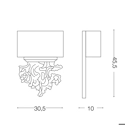 Applique con montatura in resina lavorata artigianalmente per riprodurre l'effetto del legno intagliato. Il paralume è in lamina di PVC rivestito in tessuto canvas.