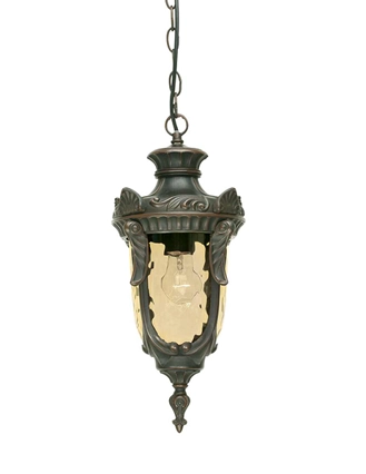 Lanterna d’epoca disponibile in più versioni e dimensioni per illuminare e arredare con stile vintage gli ambienti esterni della casa, di hotel, locali e ristoranti. La collezione ha un vetro soffiato ambrato e una finitura in bronzo antico. Grado di protezione IP44.