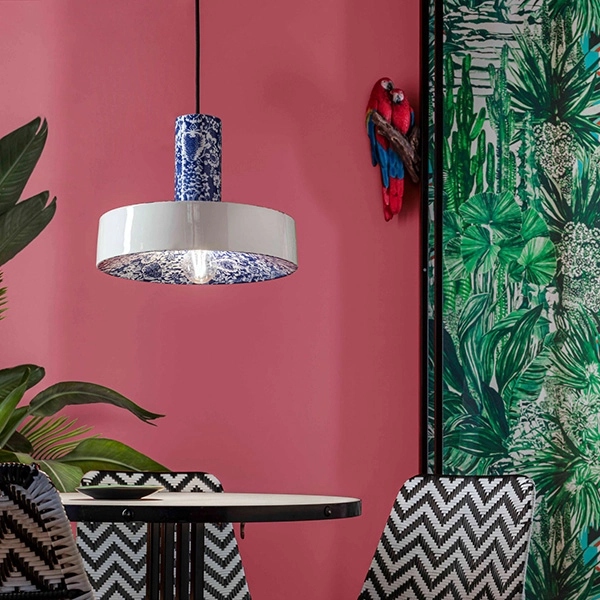 Lampada in ceramica con motivo ming in rosso e blu di grande stile e design. Perfetta per illuminare i tavoli di locali o di zone giorno di case dall'arredamento moderno. Scopri tutta la collezione Pi di Ferroluce: plafoniere e sospensioni per rispondere alle esigenze illuminotecniche di ogni ambiente.