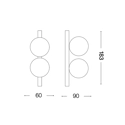 Linee essenziali e moderne per Ping Pong, lampada da parete con montatura in metallo verniciato a polveri o placcato e diffusori a sfera in acrilico satinato. Disponibile nei colori: bianco, nero, ottone spazzolato. Sorgente luminosa LED 3000 K, 50.000 h di durata. Articolo che si presta a più collocazioni, dalla camera da letto della casa alle stanze d'albergo.