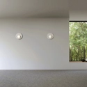 Applique in gesso indurito dal design semplice e moderno. Il diffusore è in vetro tondo soffiato. Soluzione per ogni parete da valorizzare. Portalampada GX53.