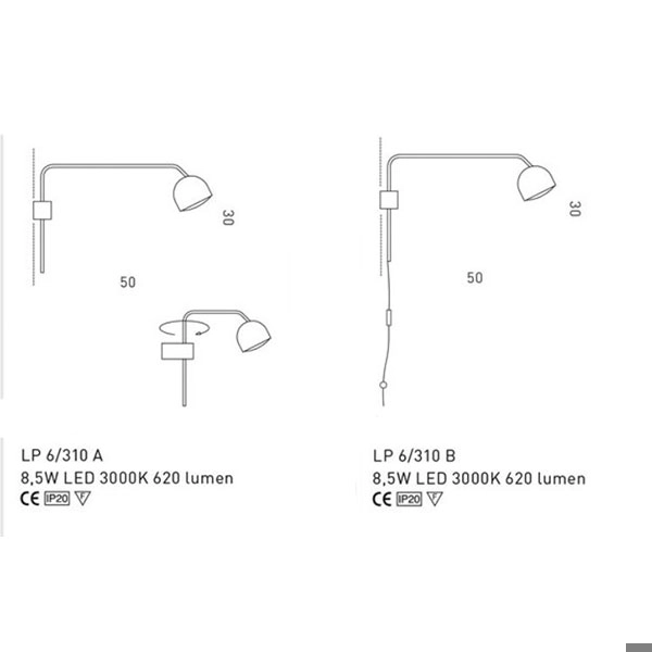 Il corpo luce è in ottone antico ed è ruotabile.