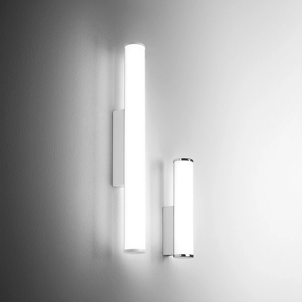 Forma easy e sobria per Polar, applique moderna ideale per ogni stile e ambiente, sia privato sia contract. Struttura in alluminio IP44. Diffusore in materiale plastico opale. Finitura: bianco opaco e cromo. Modulo LED non dimmerabile e trasformatore inclusi.