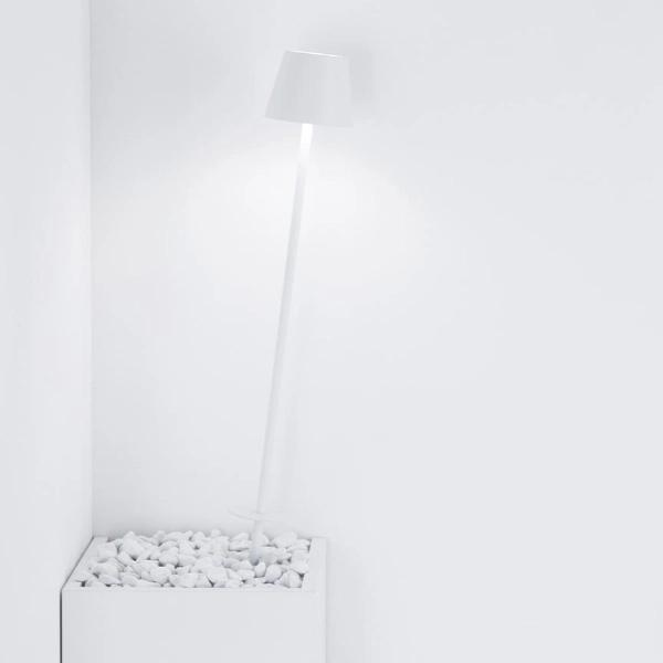 Poldina picchetto è una lampada da terra a batteria portatile e ricaricabile con touch dimmer e un kit di 2 aste. Il corpo è in alluminio verniciato, il diffusore in policarbonato e la fonte luminosa a LED. Grazie al grado di protezione IP54 (completamente assemblata) è perfetta sia per un uso interno che esterno. La durata della batteria è garantita per più di 9 ore. Le finiture disponibili sono bianco e grigio scuro.