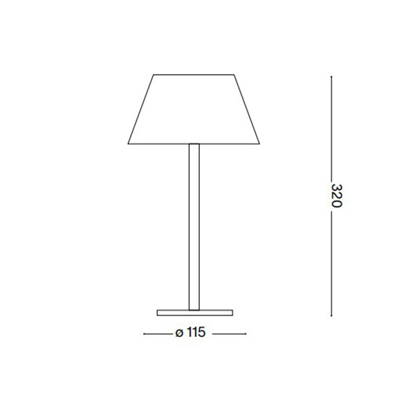 Lampada da tavolo moderna con base, stelo e paralume in metallo verniciato opaco. Diffusore in acrilico. Batteria ricaricabile e interruttore touch integrato. Finiture: bianco, coffee, nero. Tempo di ricarica della batteria 6 ore.