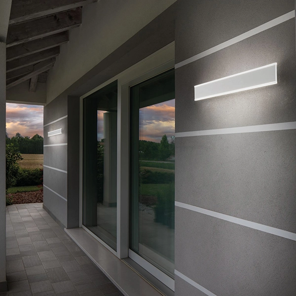 Applique moderna adatta all’installazione a soffitto o parete all’interno e all’esterno grazie al grado di protezione IP54. Disponibile in due dimensioni, Riga è una soluzione versatile per l’illuminazione della casa o per forniture contract. Sorgente luminosa a LED. Articolo dimmerabile.