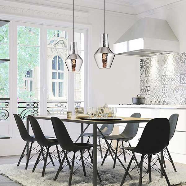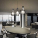 Nome romantico e forma raffinata per Romeo, lampadario a sospensione che porta un tocco di eleganza in ogni contesto. S'inserisce alla perfezione nel soggiorno e nella cucina di abitazioni private e si presta anche ad illuminare con stile locali pubblici, come bar e ristoranti. La lavorazione in vetro soffiato a bocca con finitura a rilievo “balloton” permette di creare effetti ottici che si sprigionano in tutto l’ambiente.