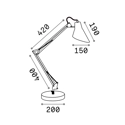 Lampada da tavolo regolabile disponibile nelle finiture: bianco, nero e nero/rame adatta per illuminare il tavolo di uffici e studi o il comodino della camera da letto. Il braccio è snodato e bilanciato a molle e il diffusore è orientabile per garantire il massimo comfort luminoso.