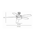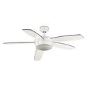 ventilatore verniciato bianco o nichel satinato con vetro bianco ,con telecomando e 5 pale in compensato bicolore reversibili