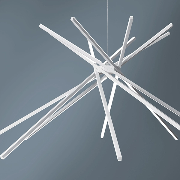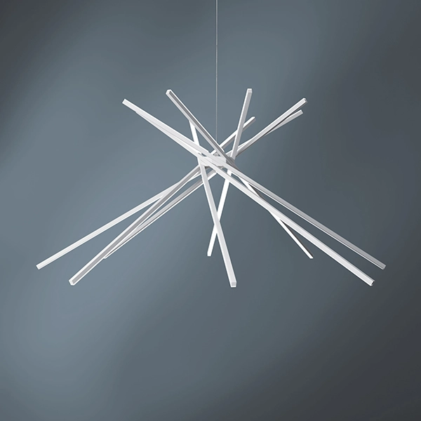 Lampada a sospensione che ricorda il gioco di Shangai. Un insieme di bastoncini luminosi che scendono e illuminano con raffinatezza gli ambienti della casa. Particolarmente indicata per la zona living. Disponibile nella finitura in bianco. Materiali: alluminio + acrilico. Driver incluso. Grado di protezione IP20.